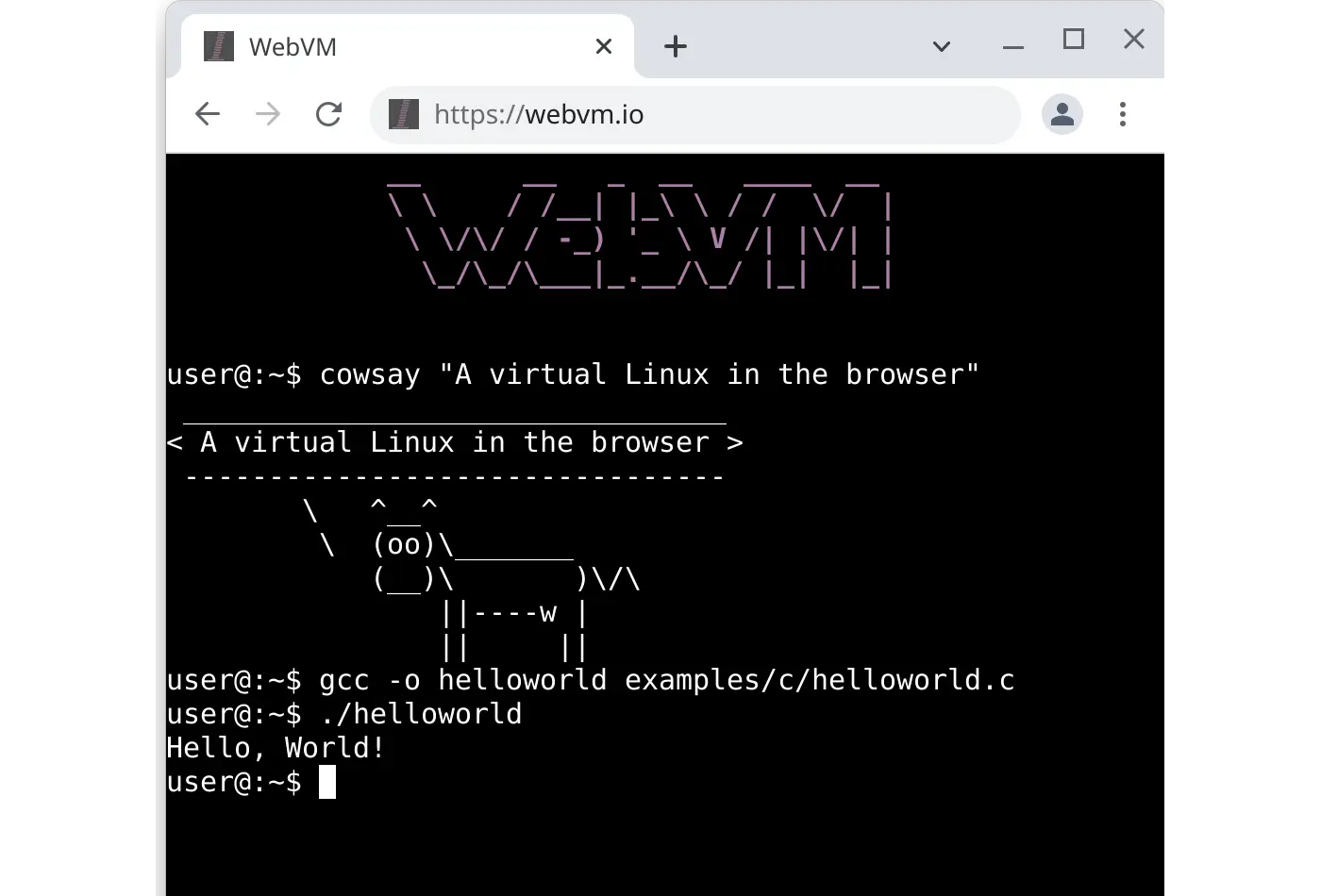 TL;DR — We made a server-less virtual Linux environment that runs unmodified Debian binaries in the browser. This is powered by CheerpX, a WebAssembly virtualization platform. Feel free to play with it and report bugs: https://webvm.io