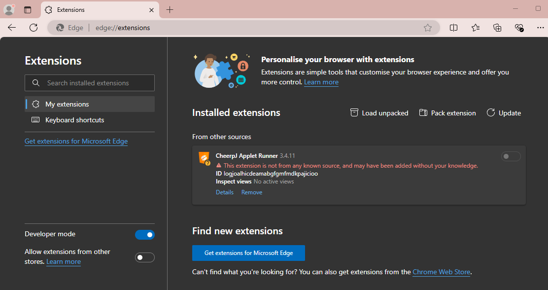 This tutorial will walk you through the steps to pack the CheerpJ Applet Runner extension in Edge, making it ready for distribution and deployment, particularly useful in enterprise environments like deploying through Group Policy Objects (GPOs).